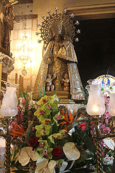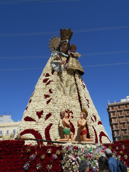 A népszerű valenciai Mária-ábrázolás így az aprószentek ünnepéhez is kötődik; míg számos más esetben angyalok láthatók a Szűzanya lábainál, itt két emberi gyermek, akik nyakánál vágás nyoma látható.