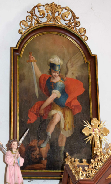 Kétségtelenül a legfigyelemreméltóbb és egyik legkorábbi műtárgya a templomnak a barokk főoltárból származó Szent Mihályt ábrázoló olajkép, amely a szentély hátfalán, az újabb faoltár felett kapott helyet.