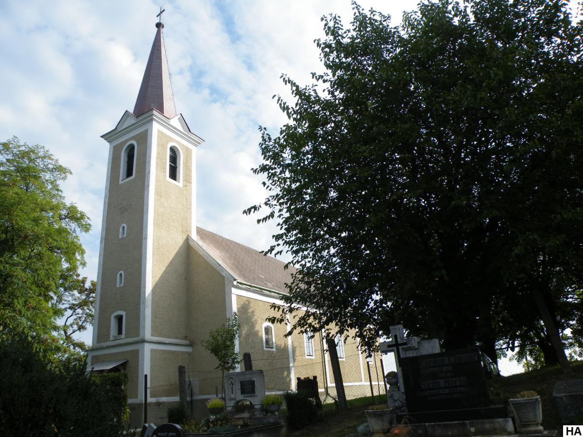 A település központjában emelkedő magaslaton, ma is temető szomszédságában áll a keletelt, hosszanti elrendezésű, egyhajós, kívül poligonális, belül egyenes szentélyzáródású templom. A tágas, nagy templom többszöri újjáépítés-, illetve bővítés eredményeként jött létre.