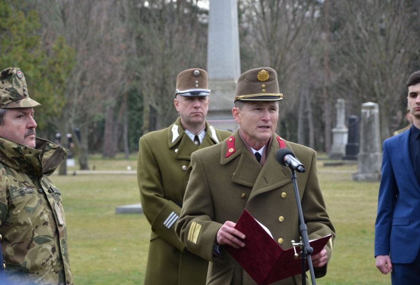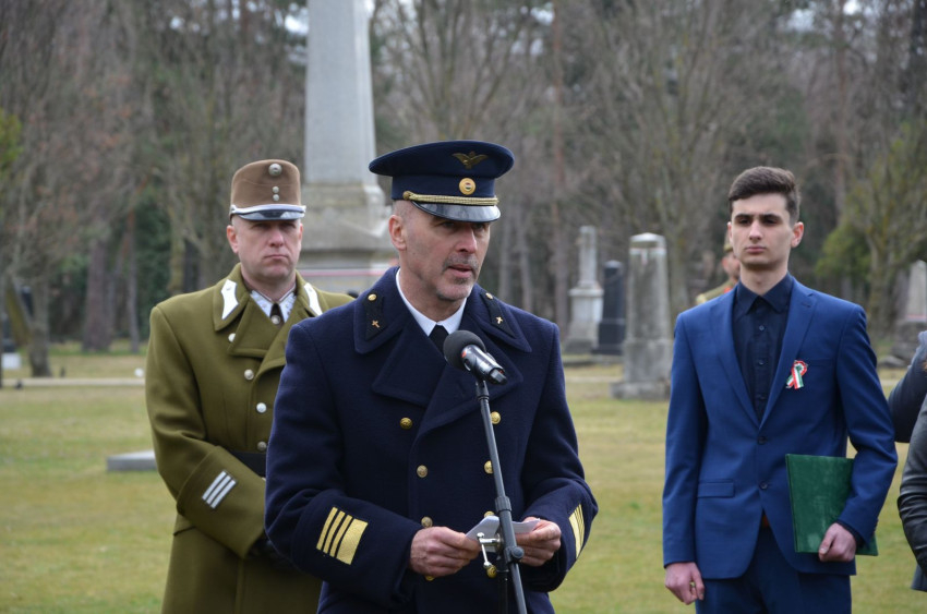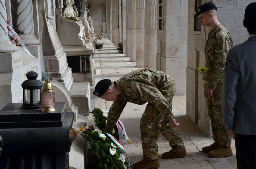 „Közeledvén március 15-i ünnepünkhöz, ma azon hőseink sírjai előtt állunk meg főhajtással, akik 175 évvel ezelőtt fogtak fegyvert a magyar ügyért. Egyszerre ünnep ez nekünk, és megemlékezés. Ünnepeljük a forradalom kitörését, amely népünk szabadságáról és az osztrák járom összetöréséről szólt, ugyanakkor megemlékezünk mindazokról, akik részt vettek ebben a harcban, akik életüket és vérüket adták a magyar szabadságért” – emelte ki megemlékező beszédében Demeter Attila alezredes, a Magyar Honvédség (MH) Tartalékképző és Támogató Parancsnokság Területvédelmi Igazgatóság, Társadalmi Kapcsolatok és Hadisírgondozó Osztály osztályvezető-helyettese a Fiumei úti sírkertben megtartott koszorúzáson.