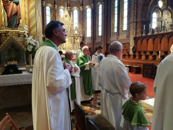 A szentmise kezdetén Süllei László érseki helynök, a Mátyás-templom plébánosa köszöntötte a szentmise főcelebránsát, Varga Lászlót, az OMCE központi igazgatóját, a váci székesegyház karnagyát, valamint a szónokot, Bogisich Ferenc atyát és az egybegyűlteket.