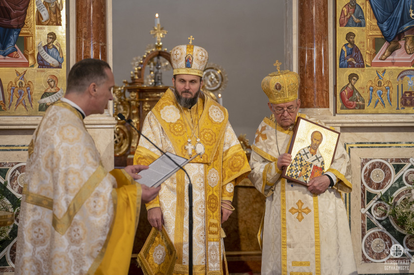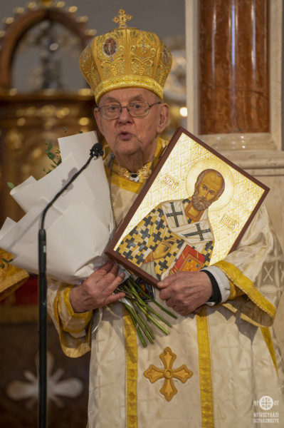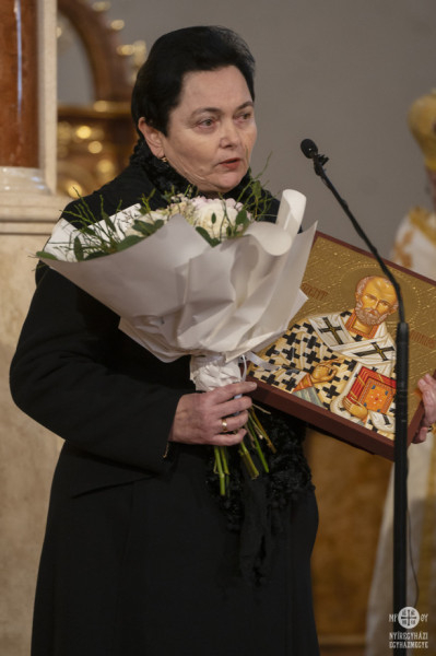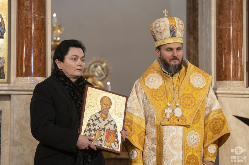 A liturgia végén adták át az egyházmegye legrangosabb kitüntetését, a Szent Miklós-díjat, amelyet idén Keresztes Szilárd emeritus püspök, valamint Szabó Bernát Sándorné, a Szent Miklós Görögkatolikus Általános Iskola címzetes igazgatója vehetett át a főpásztortól az Egyházért, egyházmegyéért végzett áldozatos munkája elismeréseként.