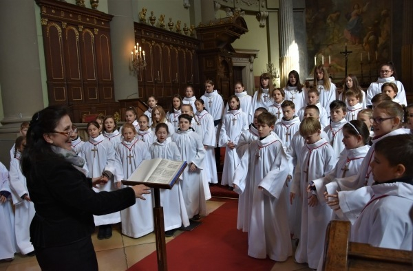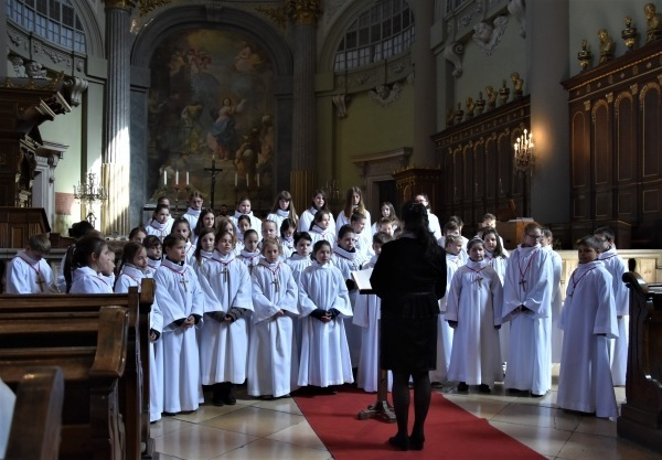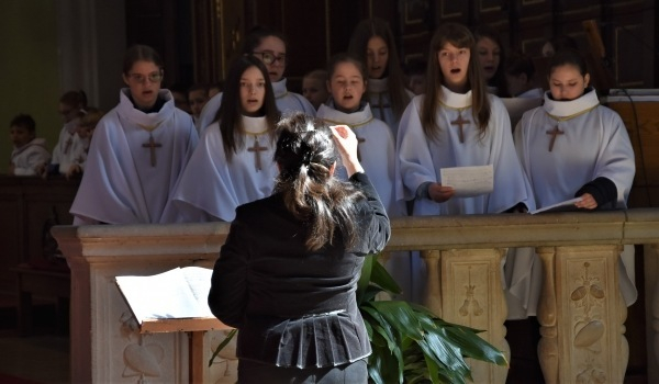 Felajánláskor a kórusiskola növendékei körülvették az oltárt, Lassus Dominus Deus című művét énekelve.