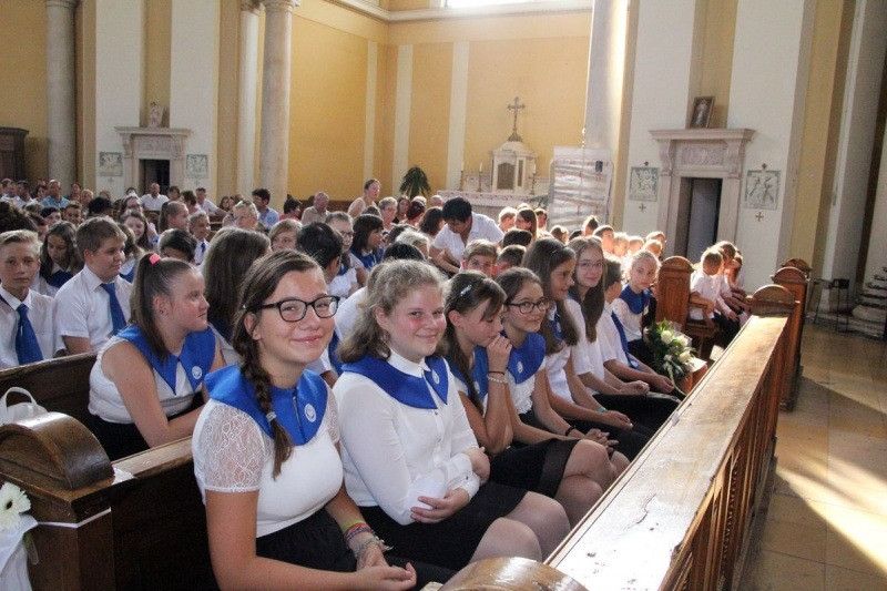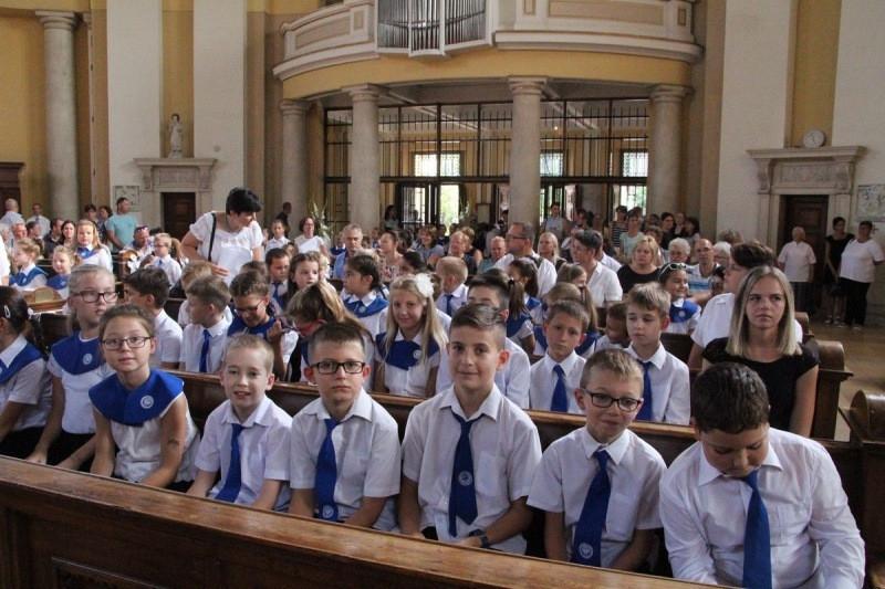 A tanulók és szüleik, nagyszüleik, tanáraik, s az első osztályosokat az első jeles iskolai eseményre elkísérő óvodapedagógusok megtöltötték a Prohászka Ottokár-emléktemplomot, ahol Spányi Antal megyéspüspök mutatta be a tanévnyitó szentmisét. Az intézmény nevében Ugrits Tamás püspöki biztos köszöntötte a főpásztort az új tanév kezdetén, s köszönte meg az egész éves jelenlétet, támogatást.