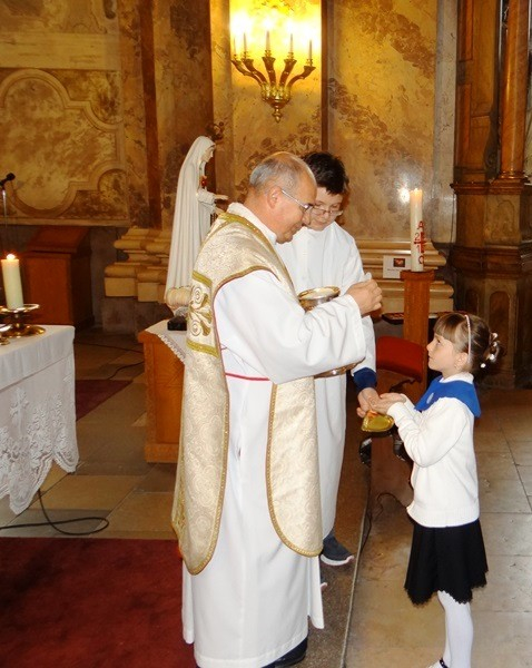 A Szent Imre Általános Iskola és Óvoda huszonkét harmadikos, egy negyedik, egy ötödik és egy hatodik osztályos tanulója járult először szentáldozáshoz május 16-án, szombaton. A kisebbek Farkas Rita hitoktató, a felsőbb évfolyamosok Ugrits Tamás püspöki biztos felkészítése után vehették magukhoz Jézus testét szüleik, családtagjaik, tanáraik ünneplő közössége előtt. Az ünnepi szentmisét Ugrits Tamás mutatta be.