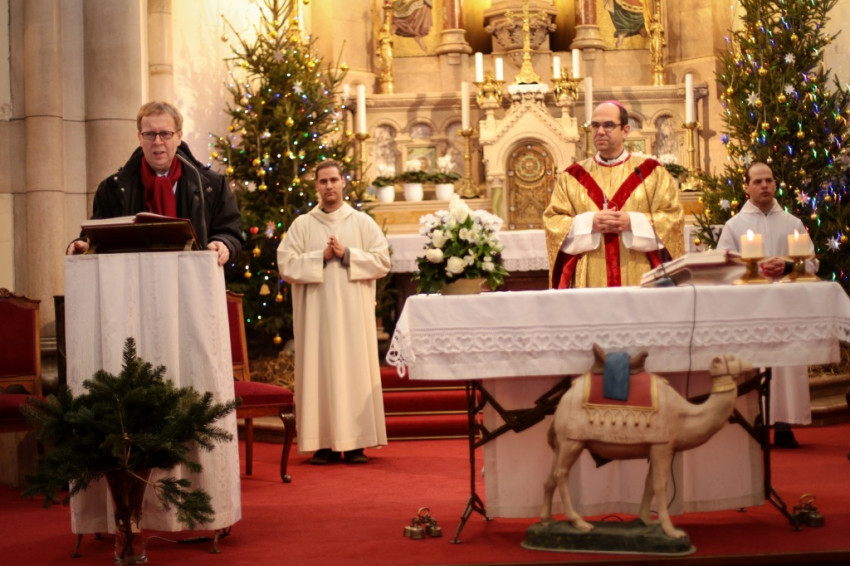 Székely János püspök a szentmise elején az ünnep lényegére irányította a jelenlévők figyelmét: Betlehem héber jelentése a „kenyér háza”. Jézus születésével megelőlegezi számunkra azt a mennyei lakomát, amelyre mindannyian hivatalosak vagyunk, hiszen értünk „eledellé lett” Ő, akit kisdedként jászolba, azaz az állatok etetőjébe fektettek.