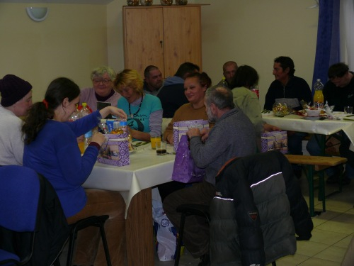 A műsor után ajándékozásra került sor: a közösség tagjai minden megjelentnek egy-egy csomagot adtak át, amelyekben meleg holmikat kaptak a résztvevők, a gyerekek pedig játékokat.
