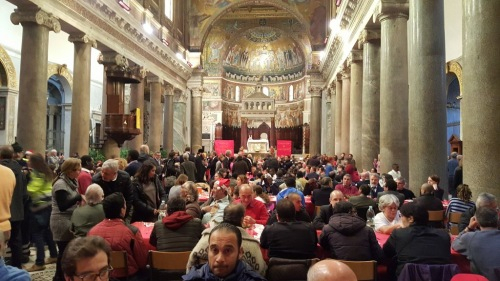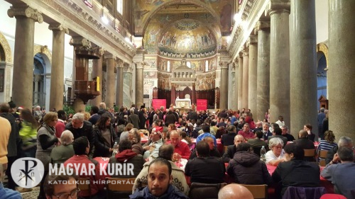 Megvalósult, amit XVI. Benedek pápa mondott a Szent Egyed közösségről: összekeveredik, aki szolgál és akit szolgálnak. Az ebéd végén az egyik vendég megköszönte, hogy együtt ülhettek asztalhoz és nem kellett idén sem egyedül tölteniük az ünnepet az utcán. Négy gondozási központból több mint negyven idős, körülbelül ötven hajléktalan és néhány szegény család vett részt az ebéden.