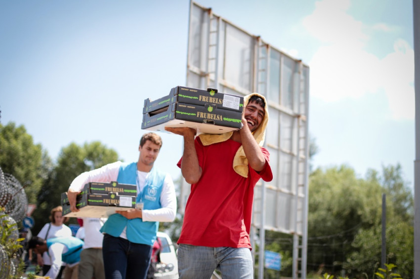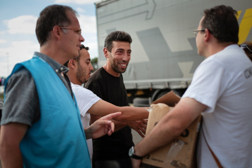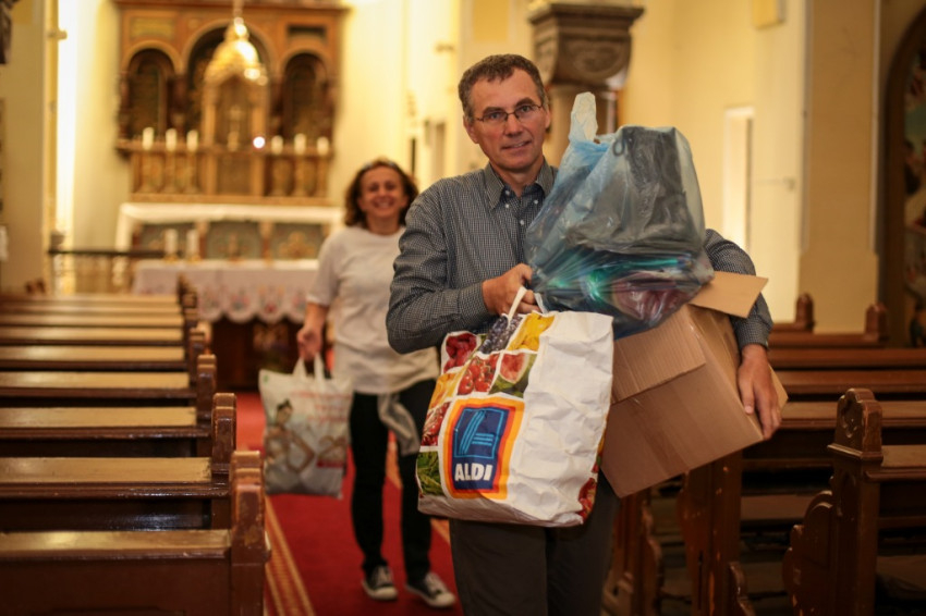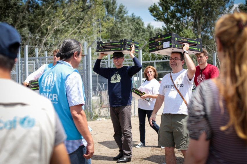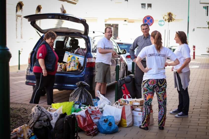 Utazásuk előtt a Szent Egyed közösség budapesti, pécsi és monori tagjai gyűjtést hirdettek, és kiderült, hogy sokan szívesen adományoznak a menekülők számára. Néhány nap alatt rengeteg cipő, ruha, gyümölcs, édesség gyűlt össze, és pénzadomány is érkezett, amelyből egy csomagtartónyi tisztálkodószert, gyümölcslét, müzliszeletet vásároltak, és buborékfújókat a gyerekeknek. A közösséghez csatlakozó Jezsuita Menekültszolgálat egy autónyi barackkal indult útnak: a gyümölcs különösen fontos eledel a hosszú út után, amit a menekültek megtettek, és a nehéz körülmények között, sokáig tartó várakozás során.