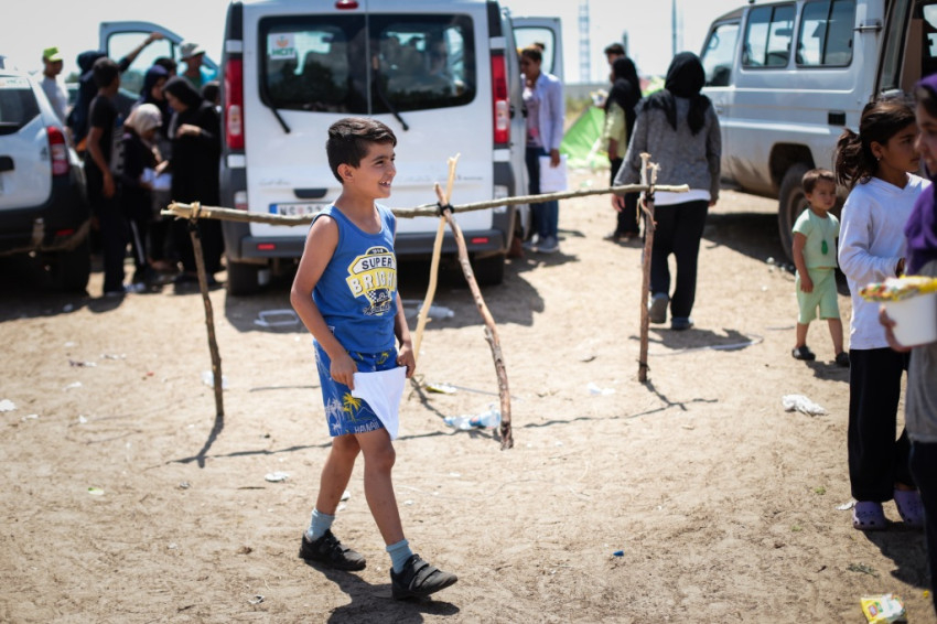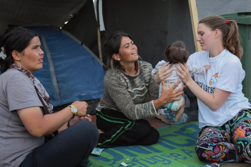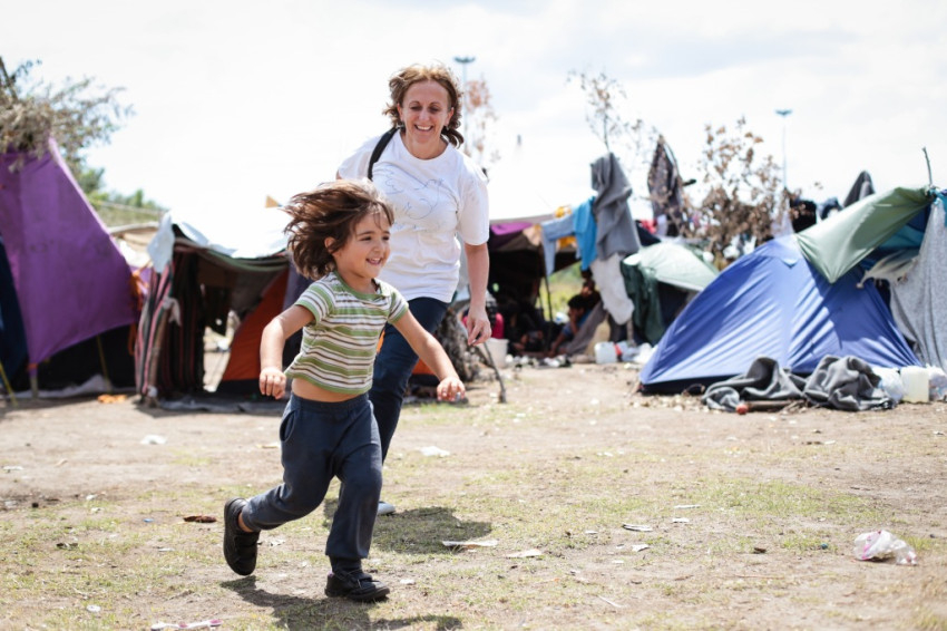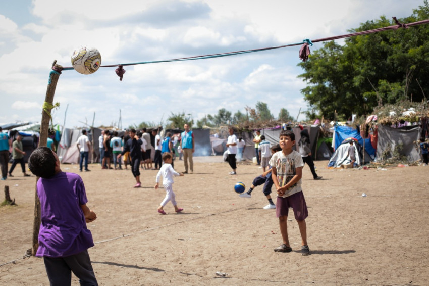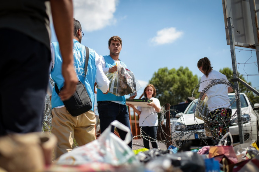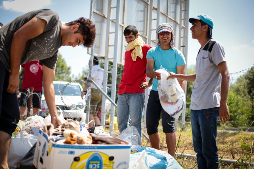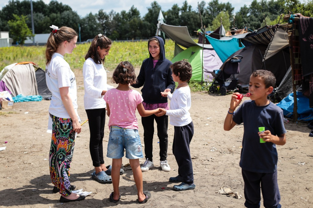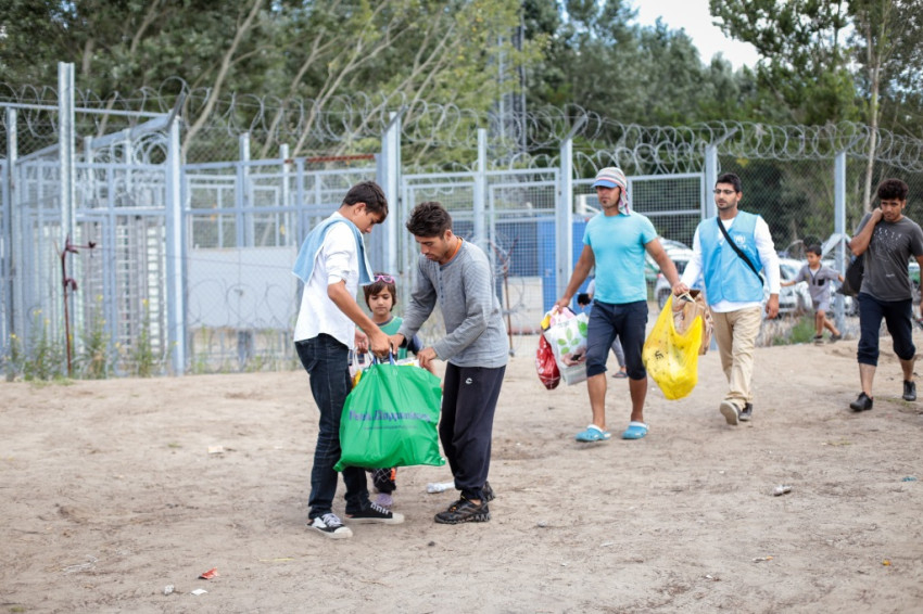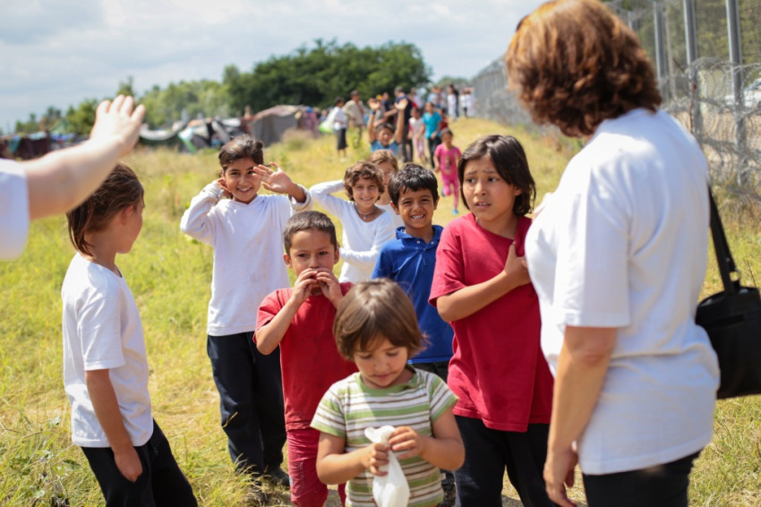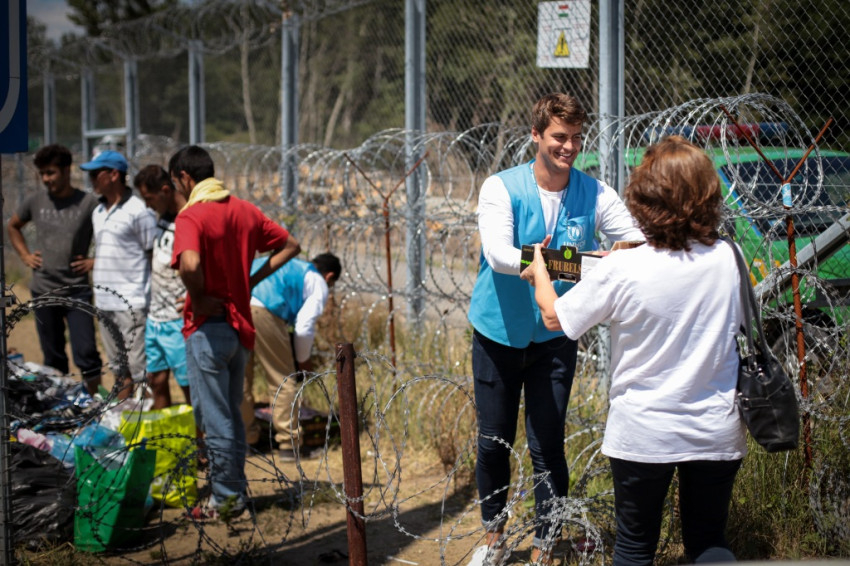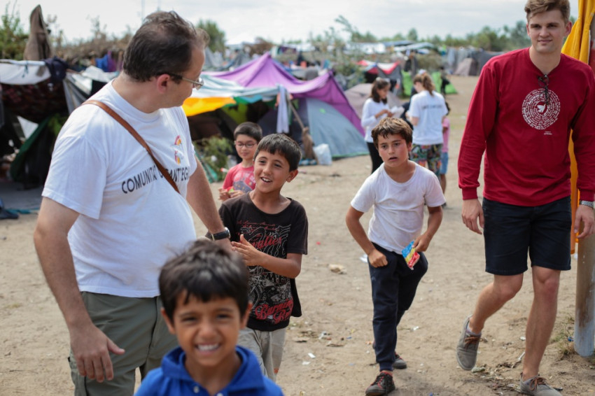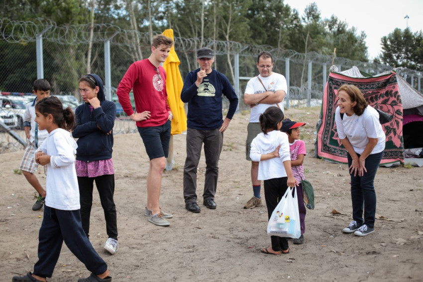 A közösség tagjai elindultak, hogy találkozzanak azokkal az emberekkel, akiket imádságukban hordoznak. A röszkei határállomásnál a hosszan húzódó szöges kerítés mellett állnak a sátrak, már messziről jól látszanak – azon a napon 650 ember táborozott ott. A drótakadály melletti keskeny sáv még Magyarországon húzódik, a tábor nagy része már a Szerb Köztársaság területén fekszik. Az ENSZ Menekültügyi Főbiztossága, az UNICEF, az Orvosok Határok Nélkül szervezet önkéntesei is jelen vannak, a Magyar Máltai Szeretetszolgálat is osztott adományokat a kis kapunál, amely a tranzitzónából nyílik.
