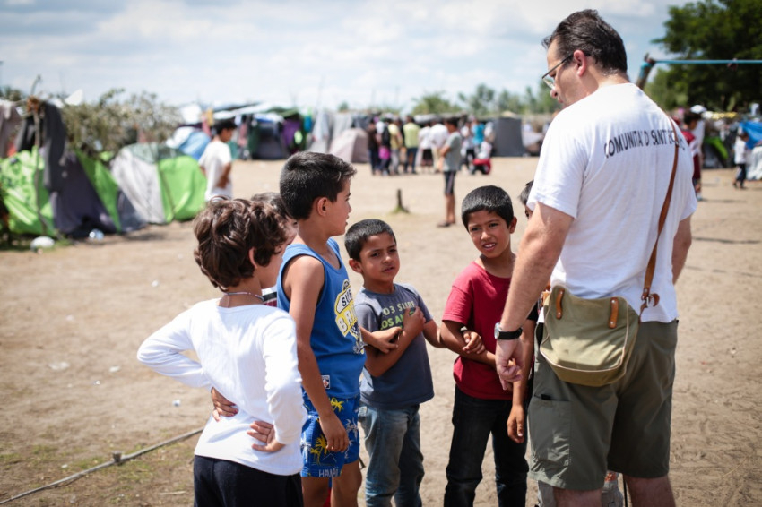 A háborúk miatt szenvedők a közelmúltig távoli vidékeken élő emberek voltak, napjainkban azonban itt vannak európai országainkban, várakoznak a határaink előtt. A magyarországi Szent Egyed közösség úgy döntött, szolidaritása konkrét jeleként ismét meglátogatja őket, adományt és kedves, emberi szót visz a várakozóknak. Néhány fiatal tagjuk heti rendszerességgel keresi fel a bicskei menekülttábor lakóit, igyekeznek segíteni a felnőttek gondjainak megoldásában, foglalkoznak a gyerekekkel. Az utazókhoz csatlakozó Jezsuita Menekültszolgálat tagjai, önkéntesei szintén hetente látogatják a tábor lakóit.