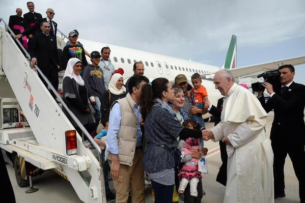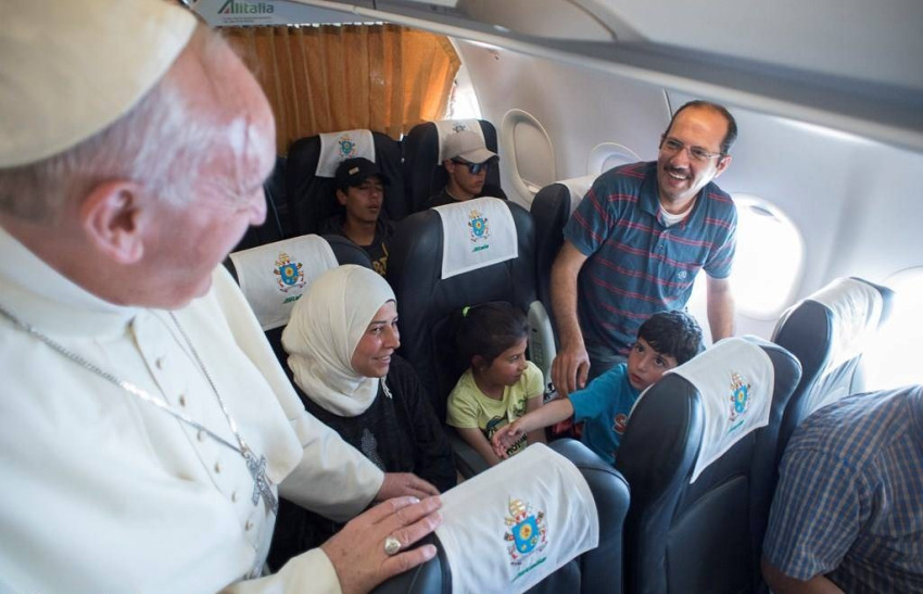 Törökországban, Libanonban, Jordániában négy és fél millió menekült él, közülük választott ki Ferenc pápa tizenkettőt, és magával vitte őket repülőgépén mint saját vendégeit. Az egyik család Deir Ezzorból menekült el, városukat az Iszlám Állam tartja megszállás alatt. Andrea Riccardi, aki egyháztörténész, emlékeztet, 1915-ben ebben a sivatagi városban lelt menedéket sok deportált örmény, majd felhívja a figyelmet arra, hogy hat gyermeket is magával hozott a pápa, akik közül a legtöbben nem tudják, milyen a béke, csak a háborút ismerik.