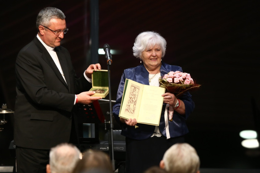 A köszöntők után adták át a Szent Erzsébet rózsája díjat. Az MKPK tizenhatodik alkalommal adományozta az elismerést, amelyre a testület tagjai idén Szóda Józsefnét választották ki Écsy Gábor, az Esztergom-Budapesti Főegyházmegyei Karitász vezetőjének ajánlása alapján.