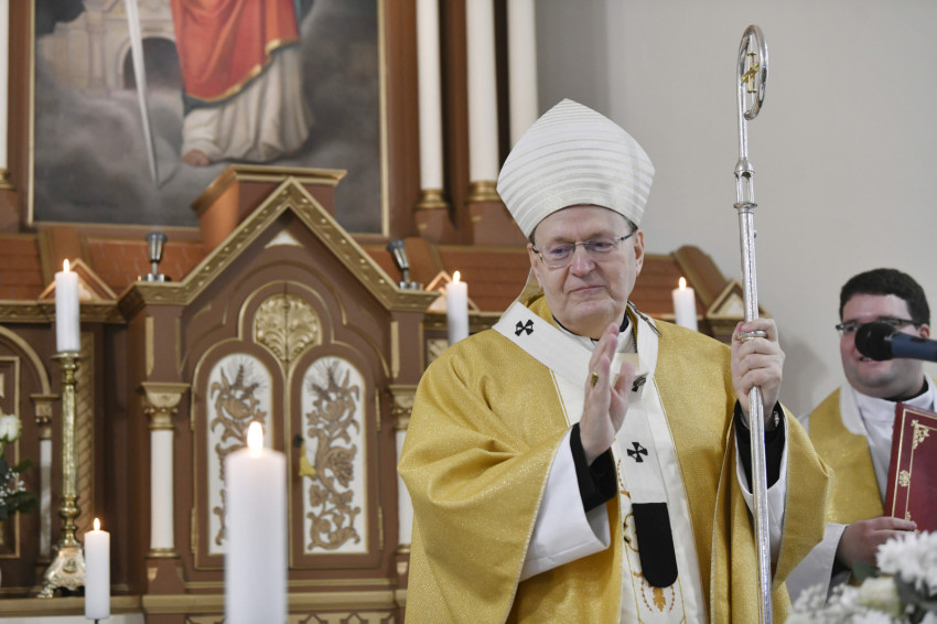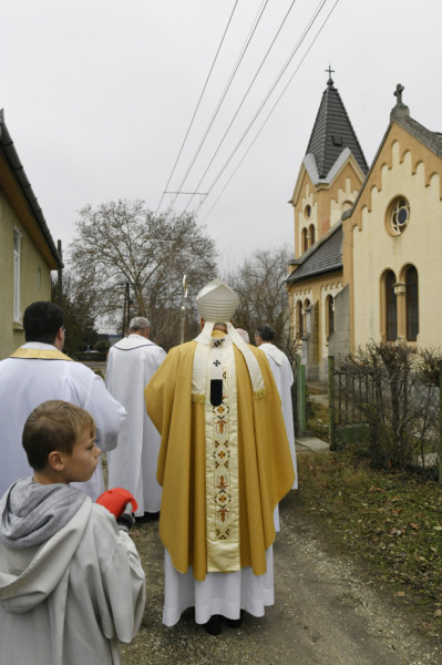 3. A vallásos érzés építi hát a templomot, és a templom építi és erősíti bennünk a hitet, a vallásos odaadást, Isten és ember szeretetét. Ezért vagyunk hálásak a régieknek, akik nagy áldozatok árán is településük központjában templomot emeltek értelmet adva ezzel egyén és közösség életének. Az itteni közösség nehéz, munkás életet élt. A bányászat megszűnése után felmerült a kérdés, hogyan alakulnak a jövő kilátásai. Az a tény, hogy ezt a közösséget plébániai rangra emeltük néhány évvel ezelőtt, most pedig felújított templomát mint plébániatemplomot ünnepélyesen felszenteljük, jele annak, hogy a közösség bízik a jövőjében, kész áldozatot is vállalni érte és kéri Isten áldását munkájára és életére. Ezt az Isteni segítséget kérem mindannyiuk számára, különösen azoknak, akik munkájukkal, adományaikkal, szakértelmükkel hozzájárultak ennek a templomnak a megújulásához.