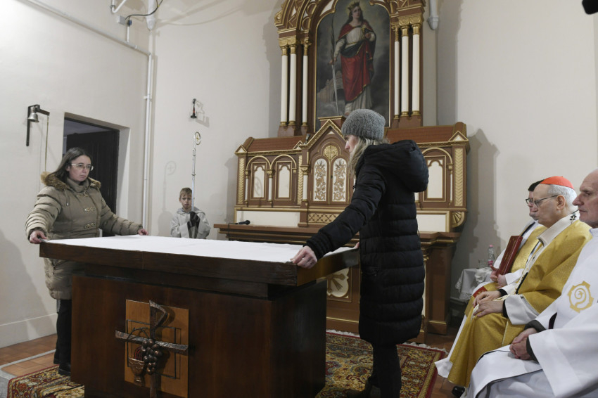 A homília után a templom és az új oltár felszentelése a Mindenszentek litániájának eléneklésével vette kezdetét.