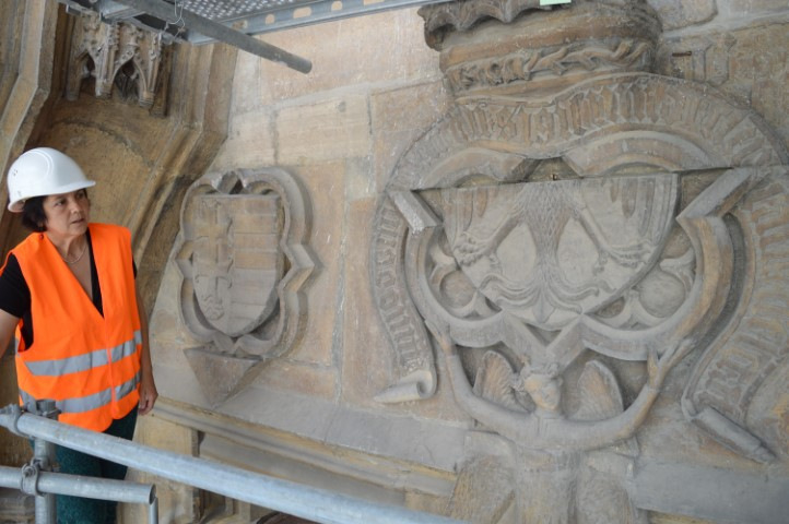 – Nekem kolozsváriként a Szent Mihály-templom főbejárata fölötti részek közelről való megnézése, megtapogatása volt nagyon emlékezetes, megható. Valójában mi látható a főbejárat fölött, és mi mit jelképez, mi milyen állapotban van? Mit, mennyit kell azokon javítani?