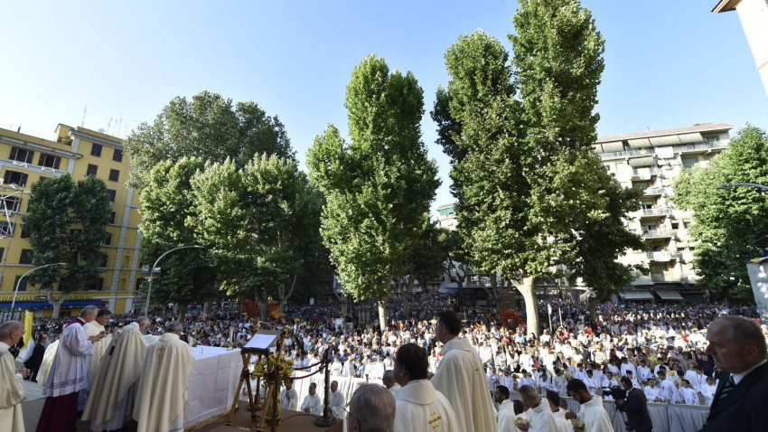 Tavaly Róma Casal Bertone negyedének Vigasztaló Szűz Mária-plébániáján, a templom előtti téren ünnepelte a Szentatya úrnapját, 2018-ban pedig a tengerparti Ostia városka Szent Mónika-plébániáján. Ezt megelőzően, 2013-tól 2017-ig Ferenc pápa, követve az évszázados római hagyományt, a Lateráni Szent János-székesegyháznál mondta a szentmisét, majd vezette az úrnapi eucharisztikus körmenetet a Merulana úton végig a Santa Maria Maggiore-bazilikáig.
