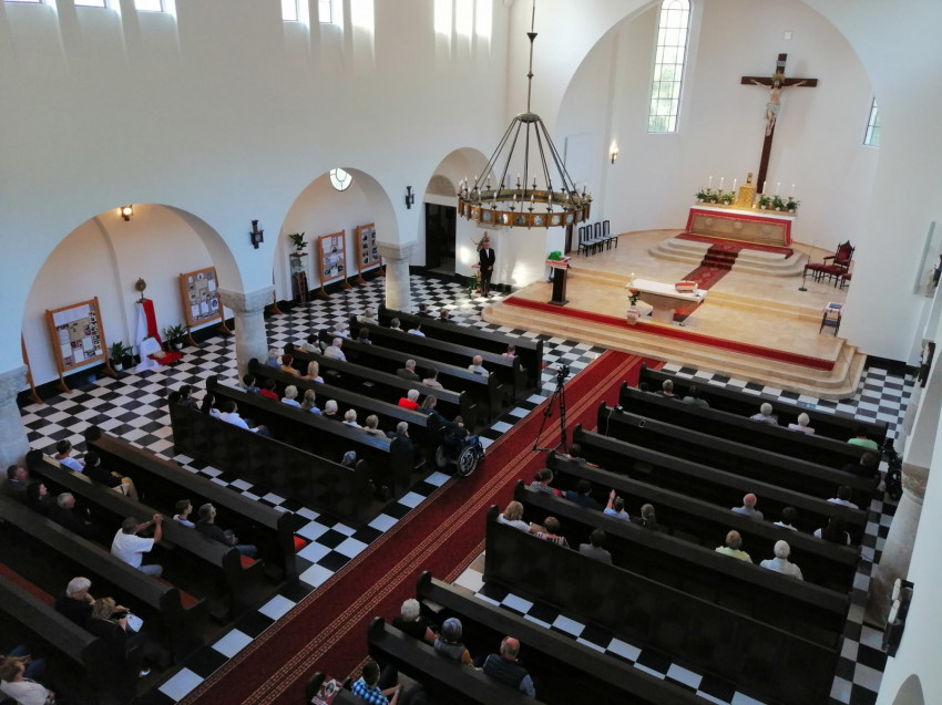 A kiállításmegnyitót követően a megyéspüspök szentmisét mutatott be a Szent Vér-kegytemplomban.