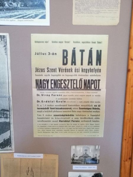 A bátai kiállítás három tematikus egységből áll: ismerteti a Szent Vér-templom építését, valamint a híres bátai búcsúkat az elmúlt nyolcvan évből, végül a kegyhely megújulásáról láthatnak összeállítást a látogatók.