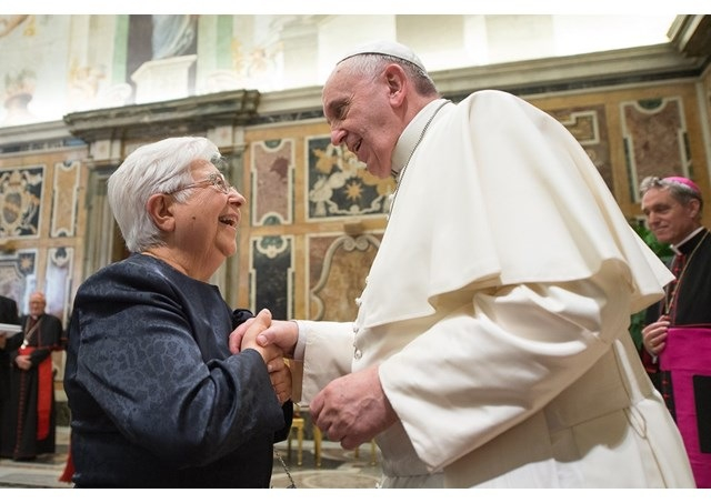 A Szentatya mindenekelőtt a hivatalosan Mária Műve nevet viselő lelkiségi mozgalom elnöknőjét, Maria Vocét köszöntötte, akit a közgyűlés megerősített hivatalában újabb hat évre, majd az elnöknőnek és közvetlen munkatársainak, valamint a világ különböző részeiről összegyűlt valamennyi résztvevőnek fejezte ki elismerését növekvő apostoli munkájukért.