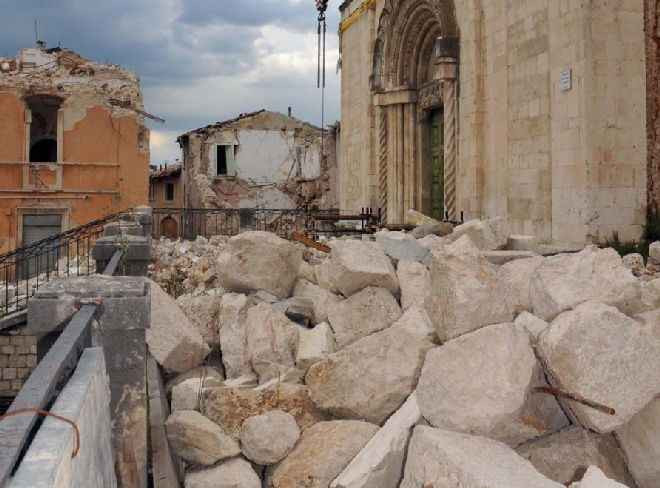 Az olaszországi Aquilából érkezett csoporthoz fordulva a pápa kiemelte: „Öt évvel a földrengés után, amely lerombolta a várost, csatlakozom a számos áldozatért mondott imához. A Roiói Szűzanya oltalmába ajánlom azokat, akik még mindig megoldatlan körülmények között élnek. Mindenkit arra biztatok, hogy tartsa életben a reményt! A lakóházak újjáépítését kísérje a templomok rendbe hozatala, amelyek az ima helyei mindenki számára, illetve a művészeti örökség helyreállítása, amelyhez a terület újbóli fellendítése is kötődik.”
