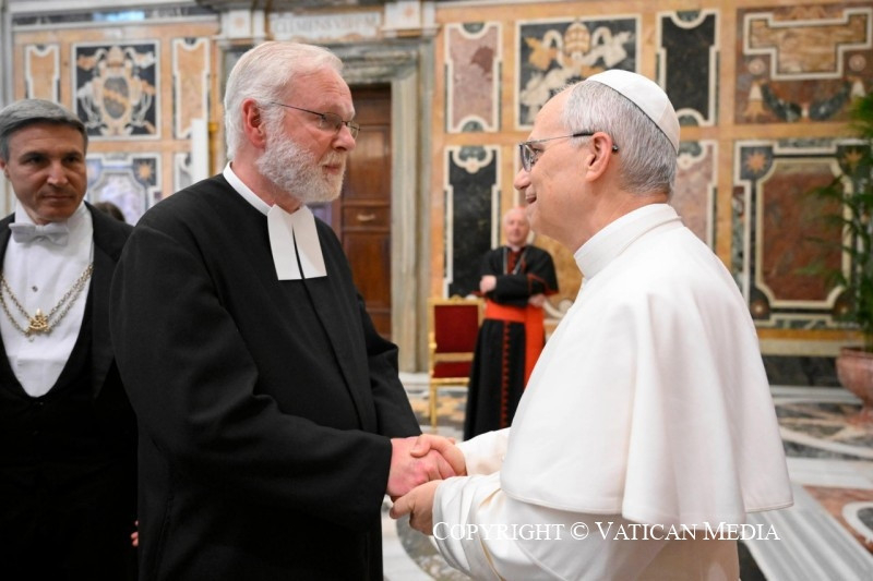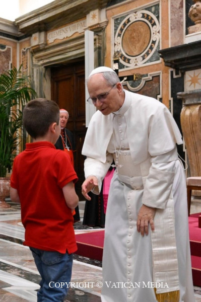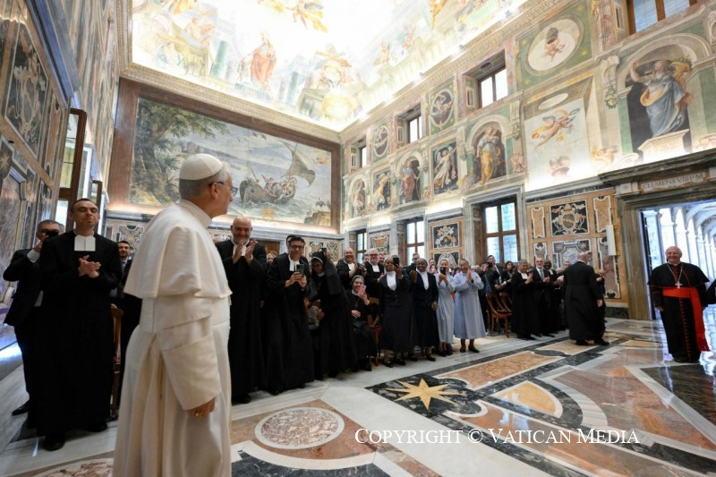 Nagyon örülök, hogy fogadhatlak benneteket az In apostolicae dignitatis solio bulla kihirdetésének háromszázadik évfordulóján. XIII. Benedek pápa ezzel a bullával hagyta ugyanis jóvá intézményeteket és regulátokat (1725. január 26.). Ez egybeesik annak hetvenötödik évfordulójával, hogy XII. Piusz pápa De La Salle Szent Jánost a tanárok védőszentjévé, „minden nevelő mennyei patrónusává” nyilvánította (vö. Quod ait apostoli levél, 1950. május 15., AAS 42 [1950/12] 631–632).