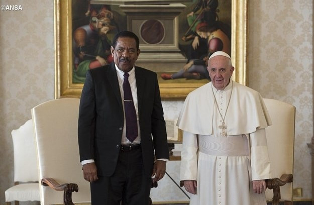 A Szentatya pénteken délelőtt fél 11-kor fogadta a Vatikánban a Dominikai Közösség köztársasági elnökét, Charles Angelo Savarint, feleségével és kíséretével együtt. A köztársasági elnök ezt követően Pietro Parolin bíboros államtitkárral és Paul Gallagher érsekkel, a Szentszék államközi kapcsolatainak titkárával találkozott.