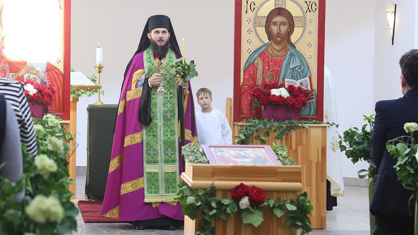 A délután folyamán megérkezett a templomünnepre Szocska A. Ábel nyíregyházi megyéspüspök is, aki megáldotta a templom ikonosztázionjának negyedik, a Szentháromságot ábrázoló ikonját, majd a pünkösdi vecsernyét vezette. Az ünnepi nagy alkonyati istentisztelet központi szakasza a háromszoros térdhajtással kísért imádság, ezt a megyéspüspökön kívül Verdes Miklós főesperes és Szabó Tamás parókus mondták el.