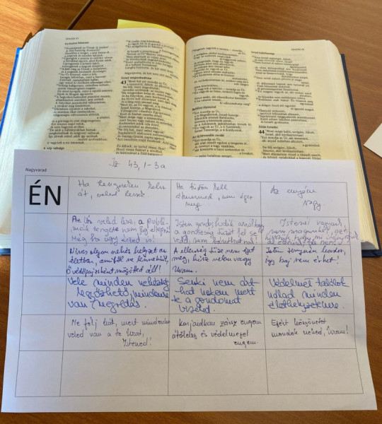 „A képzés (...) nemcsak elvont elméleti síkon mozgott, hanem gyakorlatban be is mutatta egy-egy szentírási történet feldolgozását különböző módszerekkel. Jó volt csoportban dolgozni a különböző témákon (...) Mélyebben megérintett a csoportban kidolgozott izajási perikópa ízlelgetése, amikor érzéseinket, gondolatainkat osztottuk meg egymással írásban, s azok közül választottuk ki azt a részt, amelyik leginkább nekem szólt.”