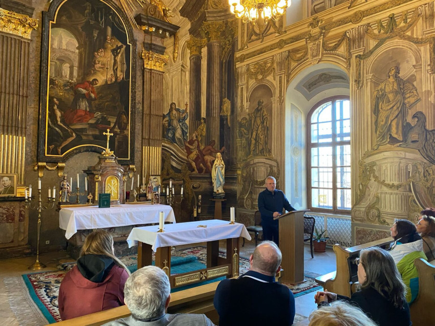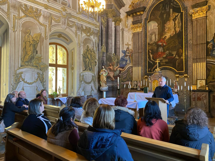 A továbbképzés második napján a főpásztor bemutatta a hitoktatóknak a püspöki palota kápolnáját is, rámutatva annak lelki és történelmi jelentőségére.