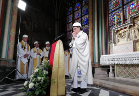 Az érsek utalt Ferenc pápára, aki a katasztrófát követő napon üzenetet küldött Michel Aupetit párizsi érseknek, világos szavakkal kifejezve kérését és kívánságát, hogy az összefogásnak és a helyreállítási munkáknak köszönhetően a Notre-Dame legyen ismét a francia főváros gyönyörű ékszerdoboza, építői hitének jele, egyházmegyéje anyatemploma, Párizs, Franciaország és az emberiség építészeti és spirituális öröksége.