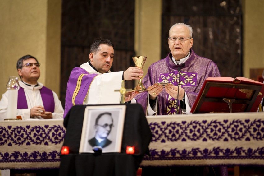 A megemlékezést követően Erdő Péter bíboros, prímás koncelebrált szentmisét mutatott be Ervin Gábor boldoggá avatásáért a Városmajori Jézus Szíve templomban.