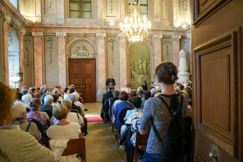 A püspöki palota üzen a gyönyörű művészi értékei által is – mondta Székely János, utalva többek között például a díszterem mennyezeti freskójára, vagy a Szent Pál teremre, amely azt üzeni Pál apostol életének eseményein keresztül, hogy az evangéliumot bátran hirdették, mert az evangélium szabad, nem királyok, császárok foglya. A vörös szalonban, ahol IV. Károly király lakott, amikor 1921-ben Szombathelyen tartózkodott, emlékezünk királyunknak az I. világháború befejezésére tett erőfeszítéseire és példamutató családi életére. A püspöki magánkápolna kapcsán elmondta: amikor az Állami Egyházügyi Hivatal nem engedélyezte egy szeminarista felszentelését – például Pavlics István atya esetében –, titokban itt szentelték fel őket.