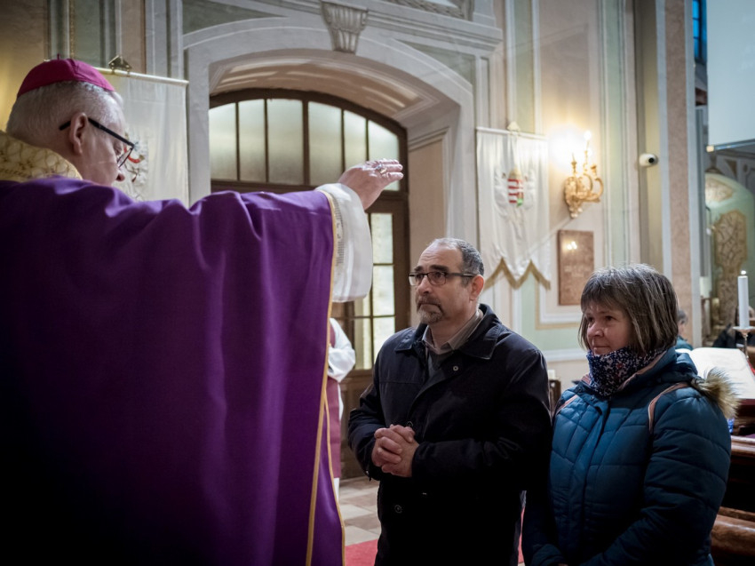 A főpásztor a szentmise keretében imádkozott a családokért, és külön áldásban részesítette a zarándoklaton részt vevő házaspárokat.
