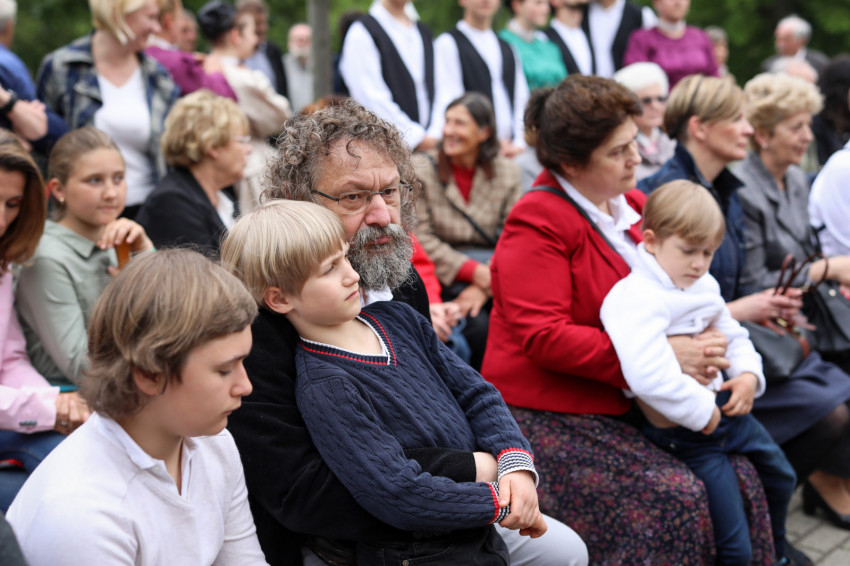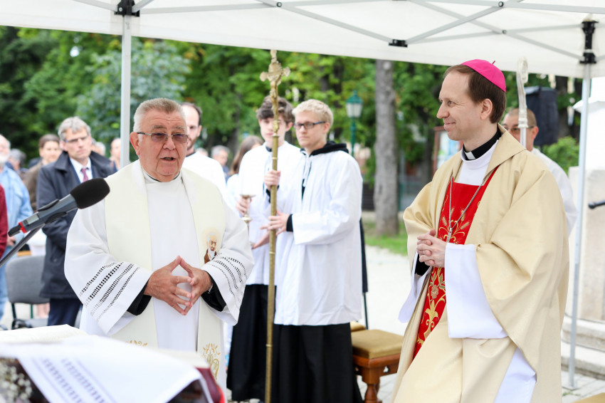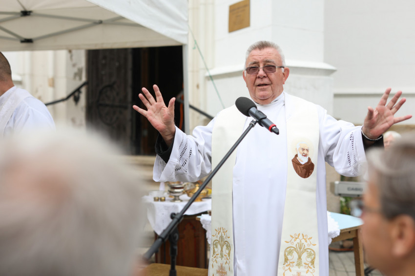 A szeretet valami ilyesmit jelent – szögezte le a szónok, és kitért a második főparancsra: „Szeresd felebarátodat, mint önmagadat.” A szeretetről sokszor azt gondoljuk, hogy érzelem, ami vagy fellobban bennem, vagy nem; lehet, hogy valaki szimpatikus nekem, a másik ember viszont nem. A szeretet azonban bibliai értelemben nem pusztán érzés, hanem elsősorban törekvés, küzdelem azért, hogy a felebarátommal jót tegyek, megbecsüljem, azt tegyem vele, aminek örülnék, ha velem is tennének az emberek. Jót teszek másokkal, ezt jelenti a szeretet, és ez az, ami igazán közösségformáló, megmutatja számunkra, hogy mennyire egymásra vagyunk utalva. A közösség segít minket abban is, hogy egyenként kibontakoztassuk azokat az adottságainkat, amelyek bennünk rejlenek. Szent Lászlónak az volt a hivatása, hogy az egész országot vezesse. Nekünk is, valamennyiünknek megvan a magunk hivatása, családon belül vagy a munkánkban, és ennek a kibontakoztatásával járulhatunk hozzá a saját közösségünk fejlődéséhez. Ez a szeretetben tud kiteljesedni, amit Jézus elénk állít, mint végcélt. Ő ezzel példát mutatott nekünk. Ha végigjárjuk itt, a templomkertben a keresztutat, láthatjuk, hogy mekkora áldozatot hozott értünk.