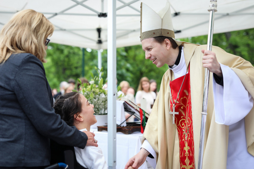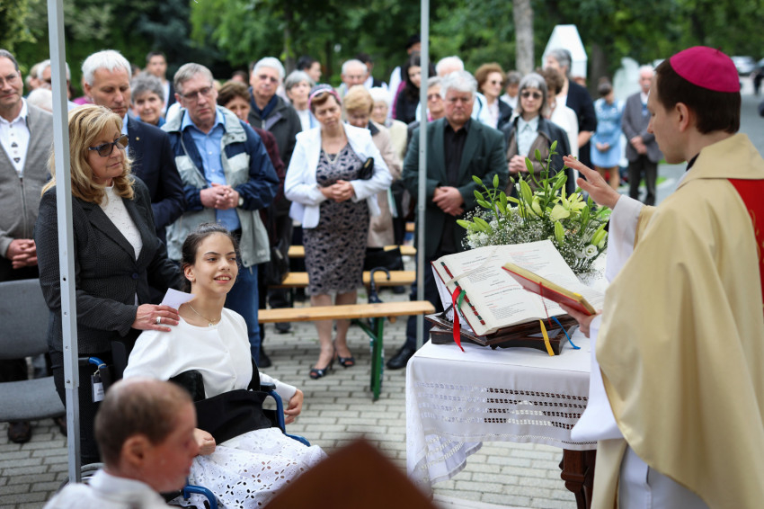 Az Esztergom-Budapesti Főegyházmegye segédpüspöke a szentmisén a bérmálás szentségében részesített egy kerekesszékes kislányt.