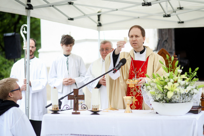 Imádkozzunk, hogy újuljon meg bennünk is a Szentléleknek ez a kegyelme, Szent László közbenjárására. Imádkozzunk, hogy ez a közösség tudjon növekedni, gazdagodni; növekedjen a családokban, akiknek, a születendő kisgyermekek részére készül az itteni óvoda, hogy együtt, közösségben, keresztény értékekben növekedve tudjuk erősíteni ezt az egyházközséget, a kerületet és az egész magyar nemzetet – fejezte be szentbeszédét Mohos Gábor atya.