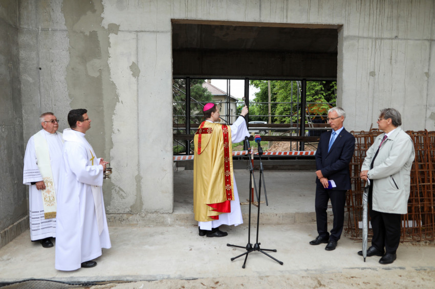 A főváros legmagasabban fekvő templomkertjében tartott szentmise után került sor az épülő katolikus óvoda bokrétaünnepségére, melyen Mohos Gábor püspök megáldotta az épülő óvodát.