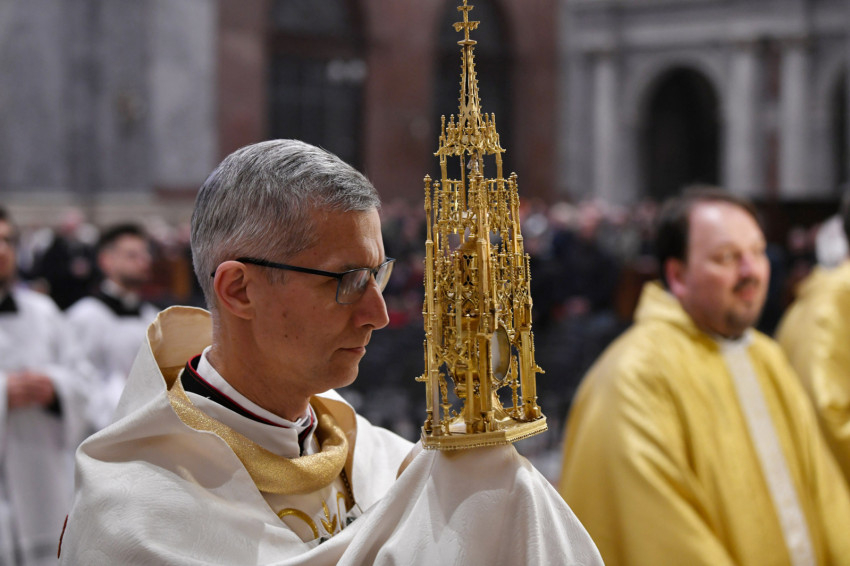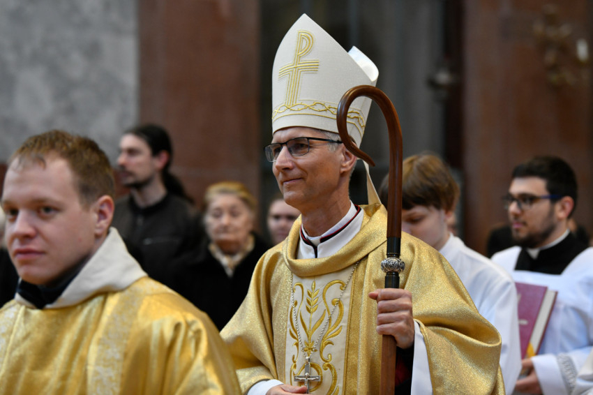 Az utolsó vacsorán Jézus szándéka és szeretete – fogalmazott a püspök – megingathatatlan, „szinte megdöbbentő, mint egy hegy”, miközben a tanítványokban kétkedés és váltakozó érzelmek vannak jelen. Ebbe a misztériumba hív meg bennünket is, amikor arra kérjük, hogy beléphessünk az ő húsvétjának titkába, és el tudjuk fogadni az ő szeretetét. Az életünk döntésein keresztül is arra hív, hogy egyre mélyebben értsük meg és egyre valóságosabban kapcsolódjunk hozzá.