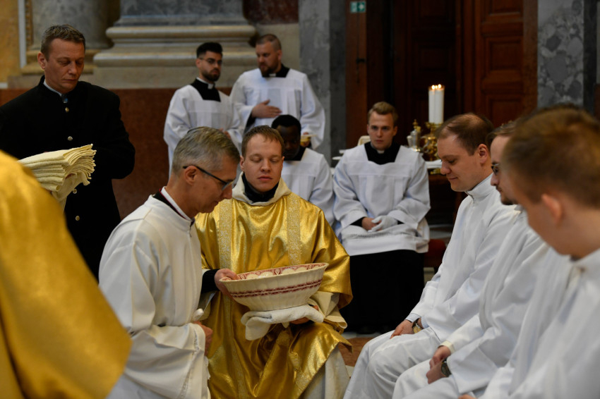 Nagycsütörtök estéjén az Egyház az Eucharisztia alapítása mellett a lábmosás gesztusára is emlékezik. Ez a püspök szavai szerint különleges, váratlan és végső szeretetjel, amellyel Jézus még egyszer meg akarta mutatni kitartó szeretetét a tanítványoknak. „Most még nem érted, hogy mit teszek, de később majd megérted” – idézte Jézus szavait, amelyekkel megerősíti saját szándékát, és