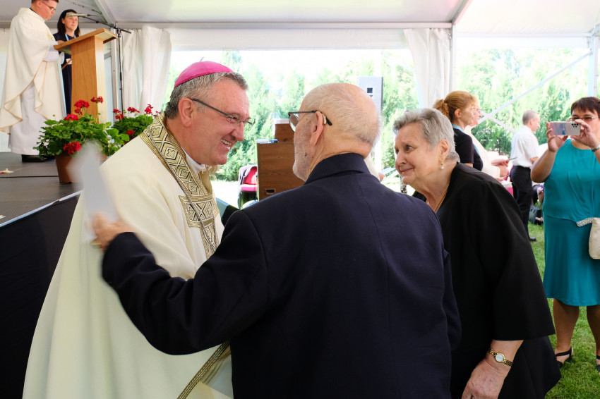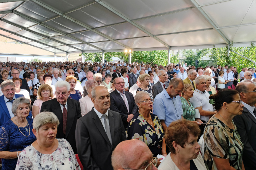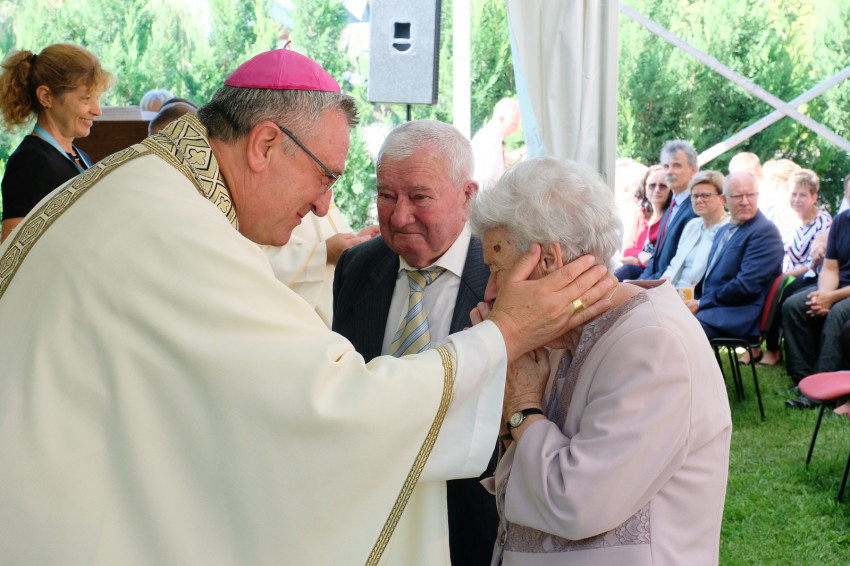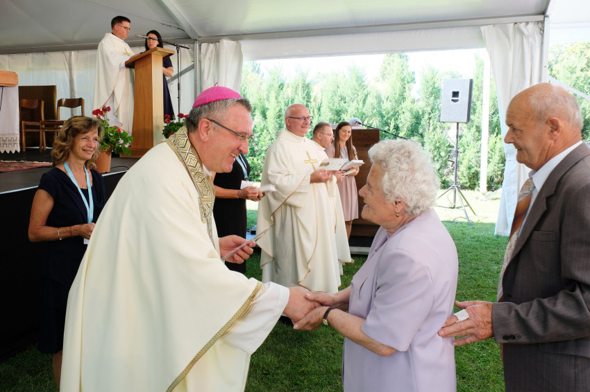 Már jóval a szentmise kezdete előtt megtelt a Püspökvár kertjében felállított hatalmas sátor, aminél nagyobbat már szinte nem is lehetne elhelyezni ott. Veres András megyéspüspök kezdeményezésére már hetedszer gyűltek össze a házaspárok, akik kerek évfordulójukat ünneplik idén. Volt öt 60. évfordulót, sőt egy 65. évfordulót ünneplő pár is.