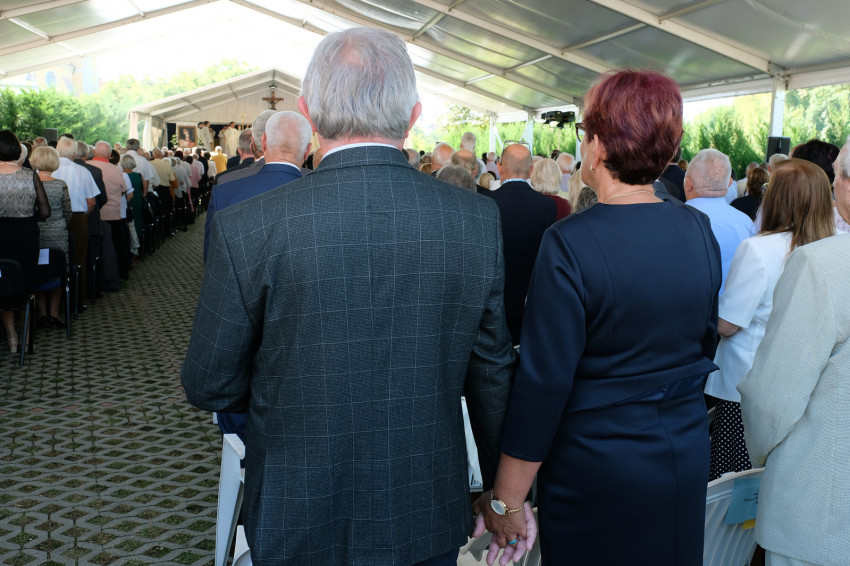 Az egyházmegyéből 453 jubileumot ünneplő házaspár regisztrált az ünnepre, ők névre szóló helyet kaptak, és egy kis füzetet, amiben az énekek, az imádságok és a szentírási részek mind benne voltak. Családtagjaik és azok, akik nem regisztráltak, de szerettek volna részt venni az eseményen, a sátoron kívül kaptak helyet. Hogy tiszta lélekkel vehessenek részt a szentmisén, a Püspökvár kertjében lehetőség volt szentgyónásra.