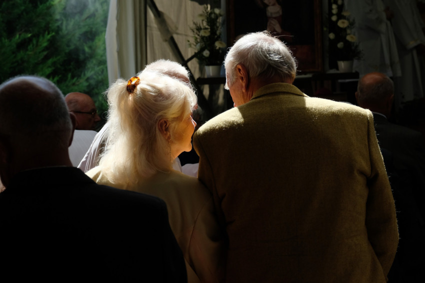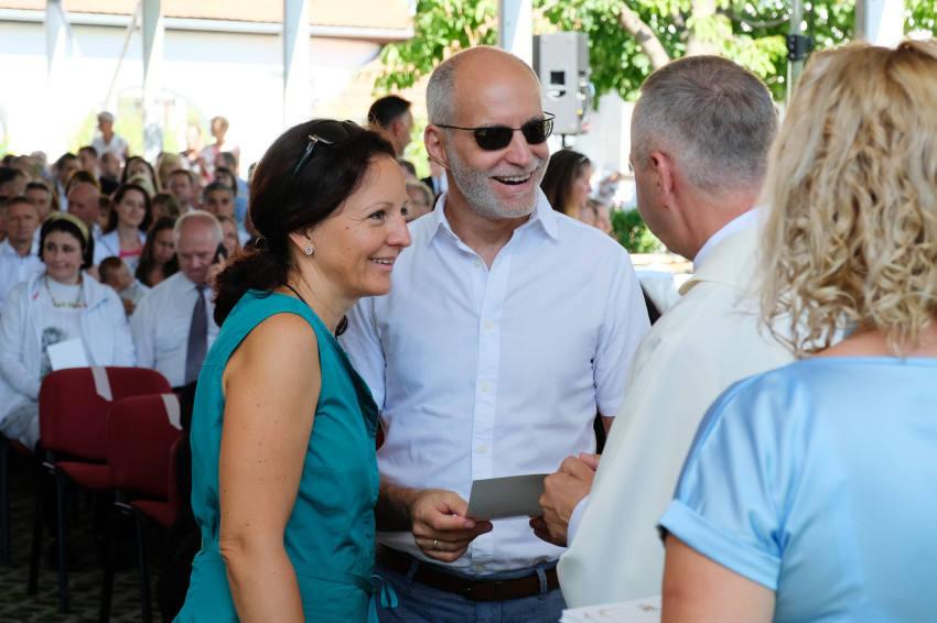Wangler Sebestyén és Oroszi Julianna Sopronból érkeztek két gyönyörű kisgyerekkel, öt éve házasok, először vannak a jubiláns házasokat ünneplő szentmisén. Fák árnyékában, a várfal mellett telepedtek meg, mert a kicsik az utat végigaludták, így sejteni lehetett, hogy itt szaladgálni kell majd utánuk. „Kisgyerekekkel nehéz, de eljöttünk egymás miatt is, mert tudtuk, hogy ez idő alatt is egymásra tudunk hangolódni.” „Ez most nekünk családi program, nem párkapcsolati. Még emésztjük, hogy átalakultunk apává, anyává” – teszi hozzá Sebestyén.