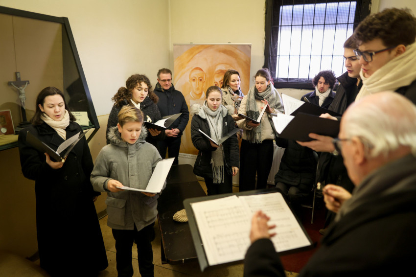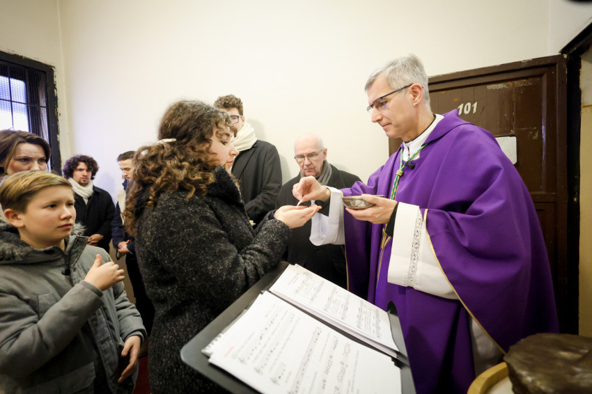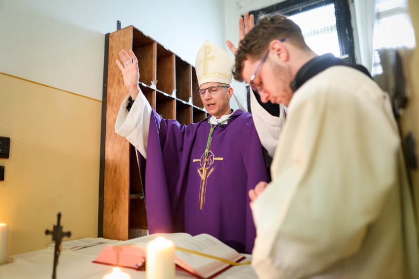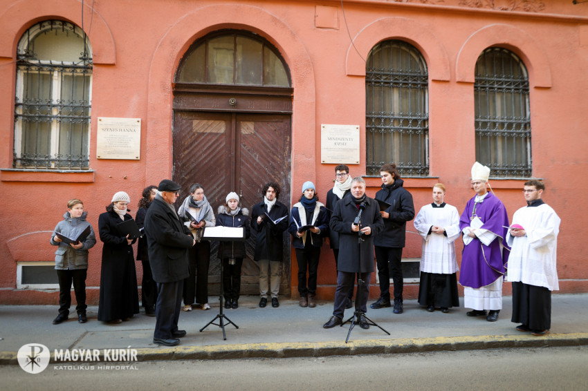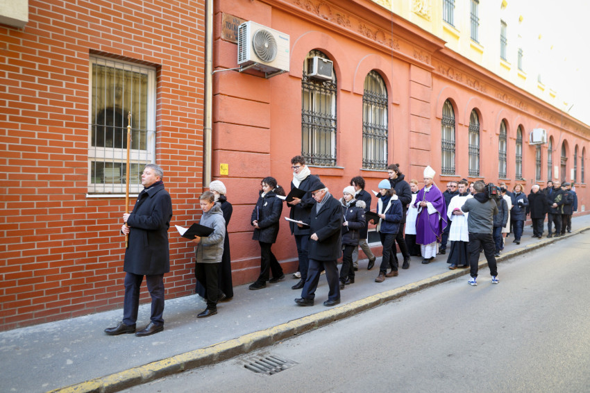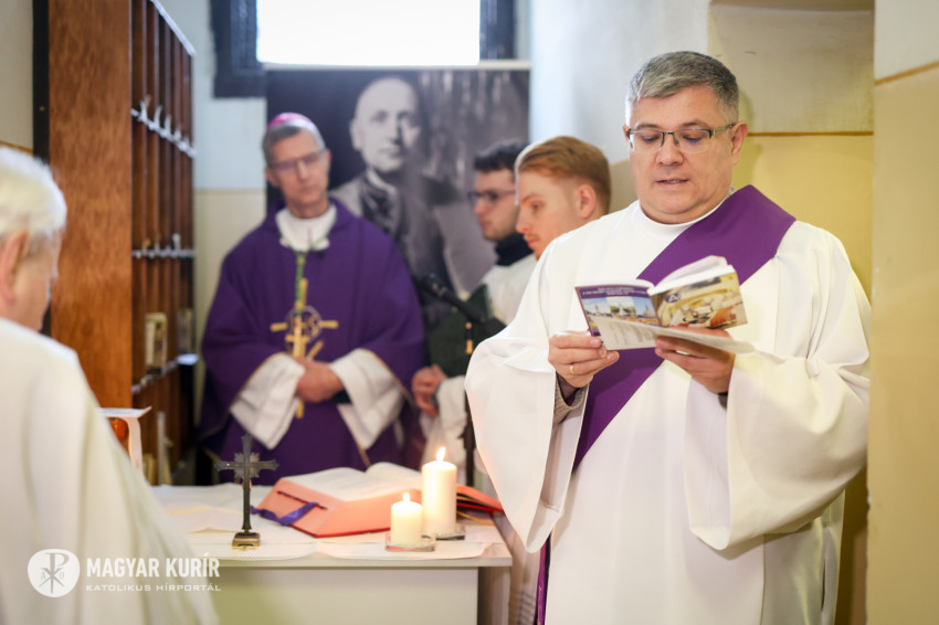 Az ünneplés szentmisével folytatódott, amelyet Martos Levente Balázs esztergom-budapesti segédpüspök mutatott be a Conti utcai börtön épületében. A szűk folyosón állt az oltárasztal, a nap sugara a szellőző forgó rózsablakán bevilágított a zárt, sötét térbe.