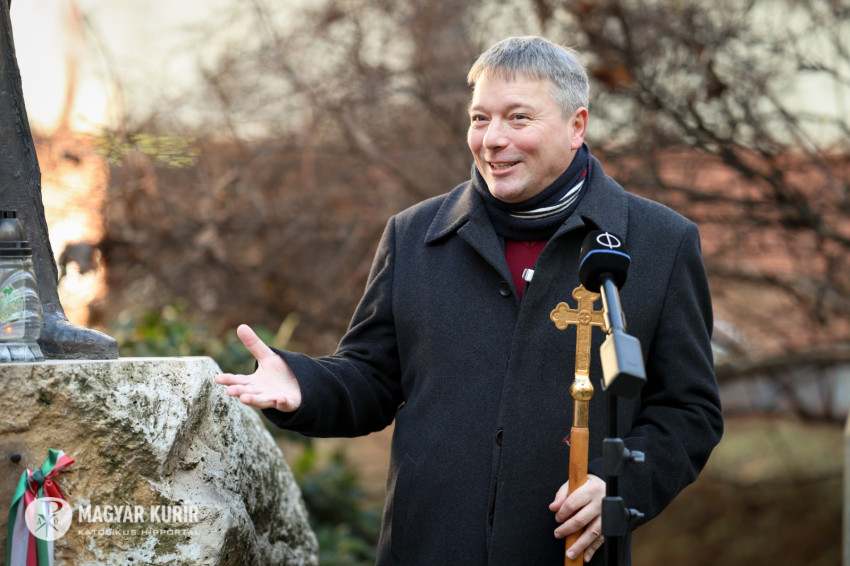 Kovács Gergely itt Németh János, az esztergomi bazilika korábbi plébánosa gondolatát idézte, akit „nagyon szigorú emberként” írt le, s akivel a halála előtt – „ekkorra tündöklővé vált a szíve, lelke, az elméje” – volt nagyon szép találkozása. A néhai plébános ekkor osztotta meg vele, mit gondol a pokolról. „Van pokol, de üres. A Jóistennél a boldogságban leszünk, még a nagy diktátorok is, csak nekik lesz a leghosszabb és legnehezebb az odáig vezető bűnbánat és megtisztulás.” „Itt minket három emléktábla – nyilas, a szovjet-orosz és a kommunista áldozatok – emlékeztet, hogy ez a hely egy »mini pokol«. Mi magunk tudunk magunknak poklokat fabrikálni, de felül is tudjuk írni a poklot, mennyországgá változtathatjuk. Azt erősíti meg bennünk, hogy mindig van remény” – fogalmazott Kovács Gergely.