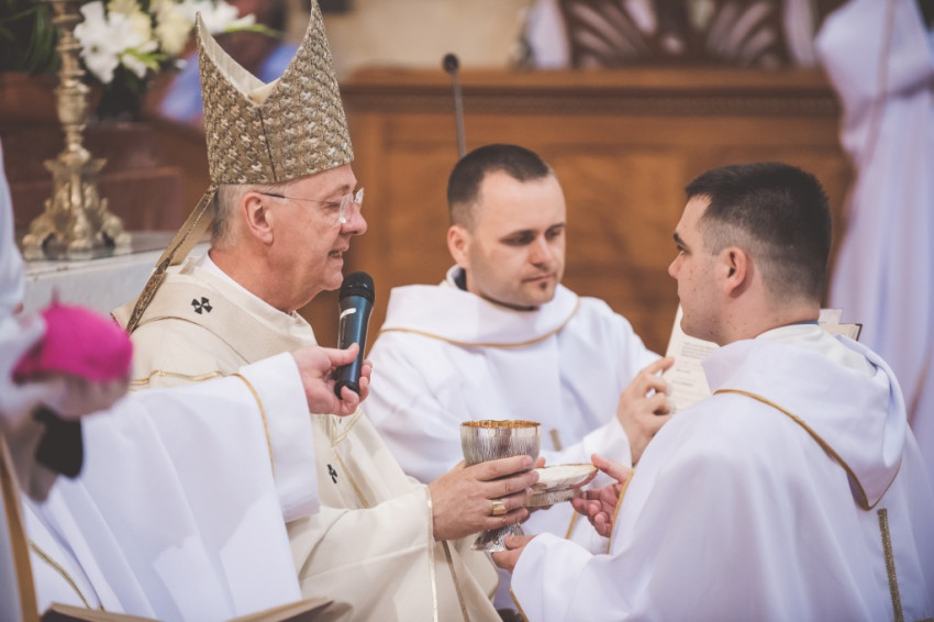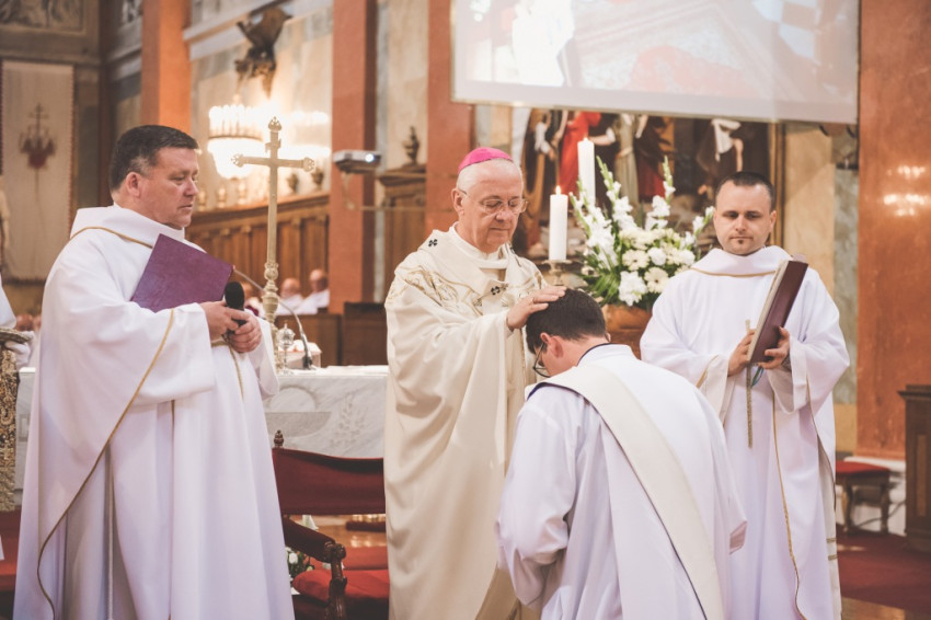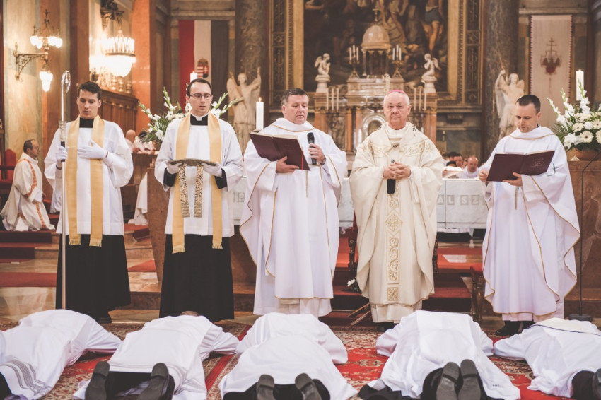 Ternyák Csaba egri érsek úgy fogalmazott, az egész Egyház ünnepe a mai nap; mindannyian imádkozunk a szentelendőkért, hálát adunk azért, hogy sokan támogatták őket. A paptestvérek a kézfeltétel ősi szertartásával befogadják a szentelendőket.
