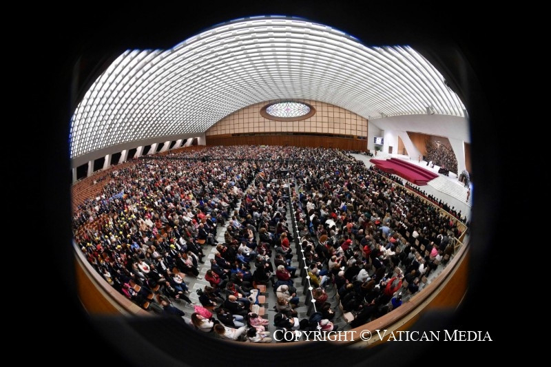 Végül a Szentatya a VI. Pál aulában elhelyezett, a Nacimienti Gaudium (Öröm születése) elnevezésű betlehemért mondott köszönetet az adományozó Costa Ricának. A Gyermek születését felidéző alkotást huszonnyolcezer színes szalag díszíti, melyek mindegyike egy-egy életet jelképez, amelyet az imádságnak és a katolikus szervezetek által a rászoruló anyáknak nyújtott támogatásnak köszönhetően mentettek meg az abortusztól.