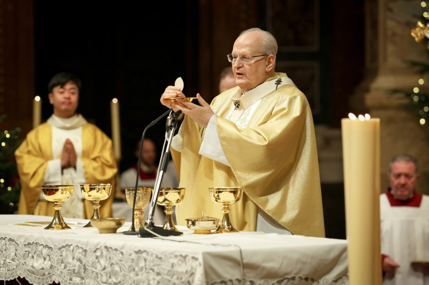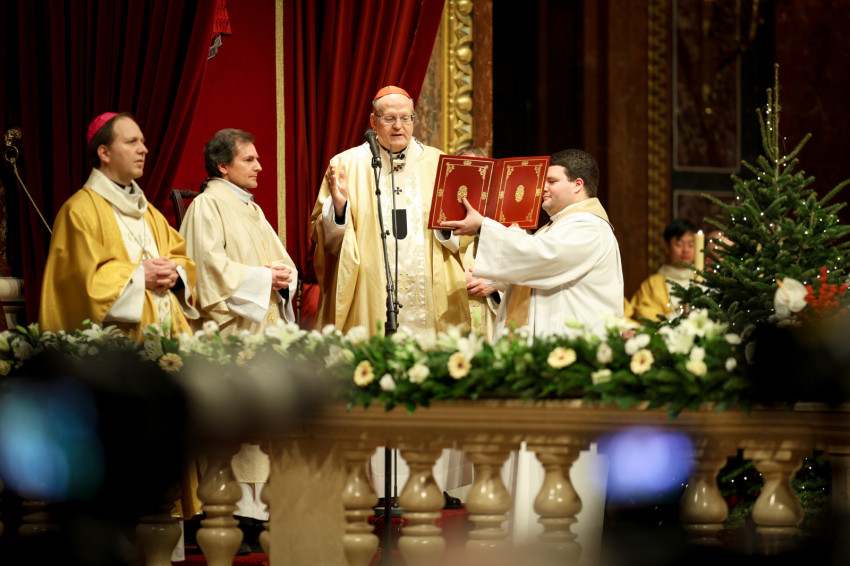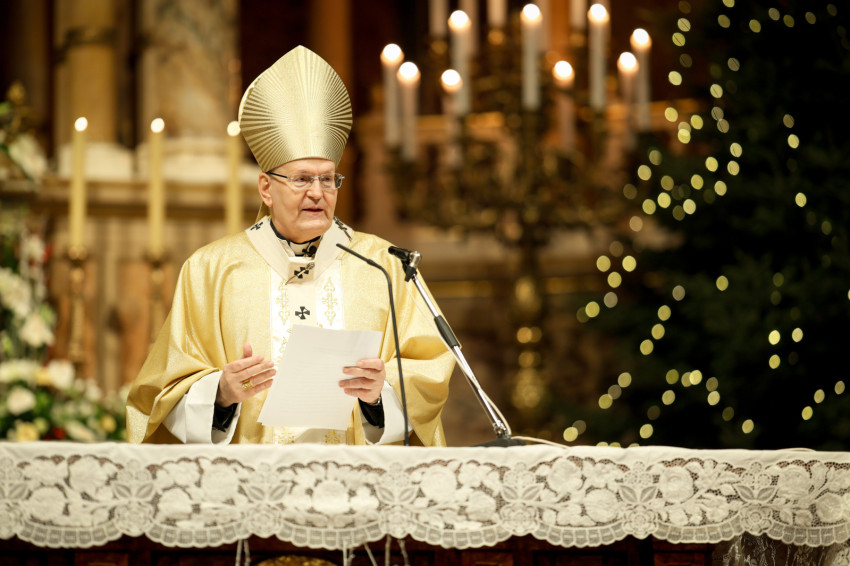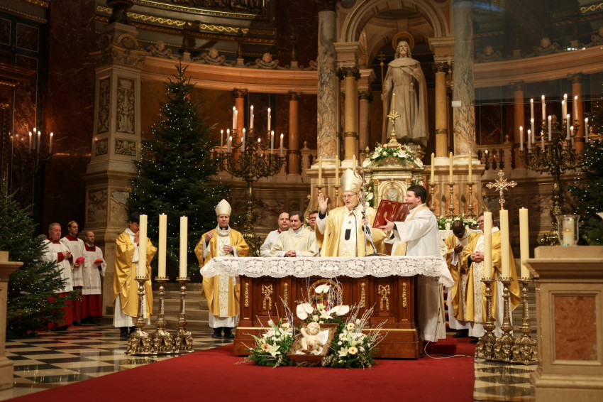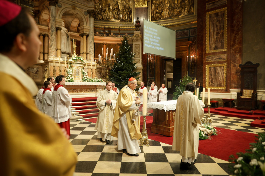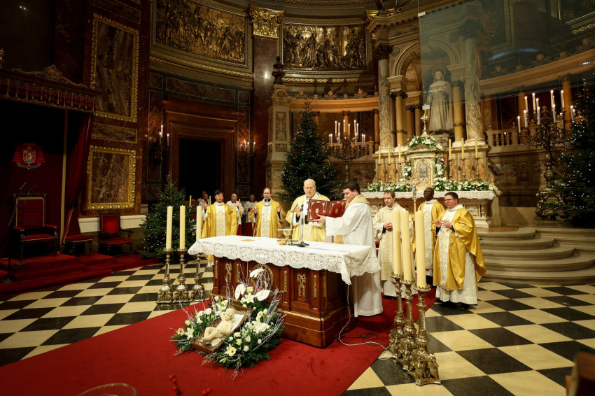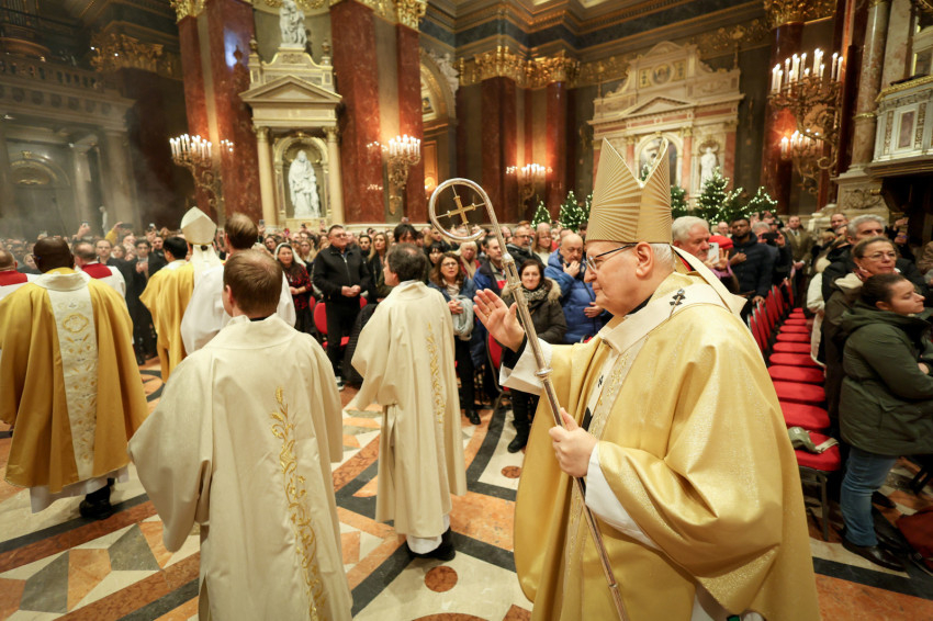 Homíliájában Erdő Péter a karácsony lényegére irányította a figyelmet: Jézus születése örömet hoz az életünkbe, de a jel, amelyet az angyal a pásztoroknak ígért, meglepően egyszerű – egy kisgyermek a jászolban. Ez az egyszerűség azonban mély üzenetet hordoz: Isten szeretete nem a kényelemben, hanem az önátadásban mutatkozik meg.