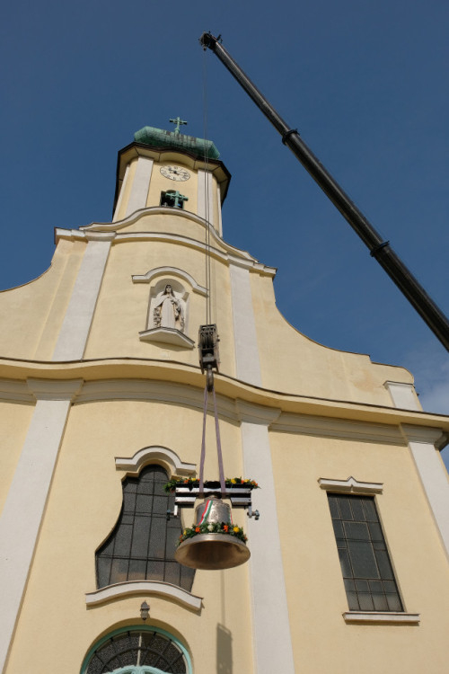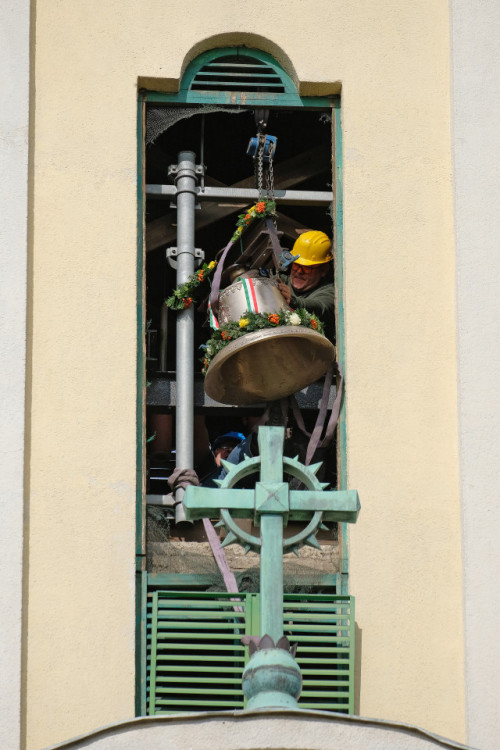 A könyörgés elhangzása után a püspök szenteltvízzel meghintette, olajjal megkente, valamint tömjénezte a harangot, amelyet ezután rögtön be is emeltek a toronyba.