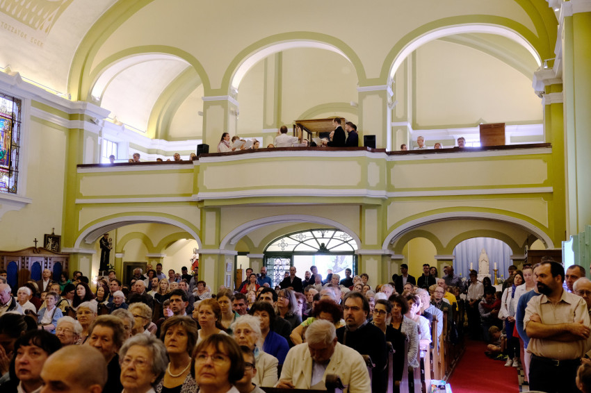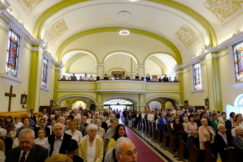 Ezt követően vonultak be a hívek a templomba, ahol a szentmise elején Erdődi Ferenc plébániai kormányzó köszöntötte a püspököt, az adományozókat, Horváth Tamást, a kerület polgármesterét és az egybegyűlt híveket.